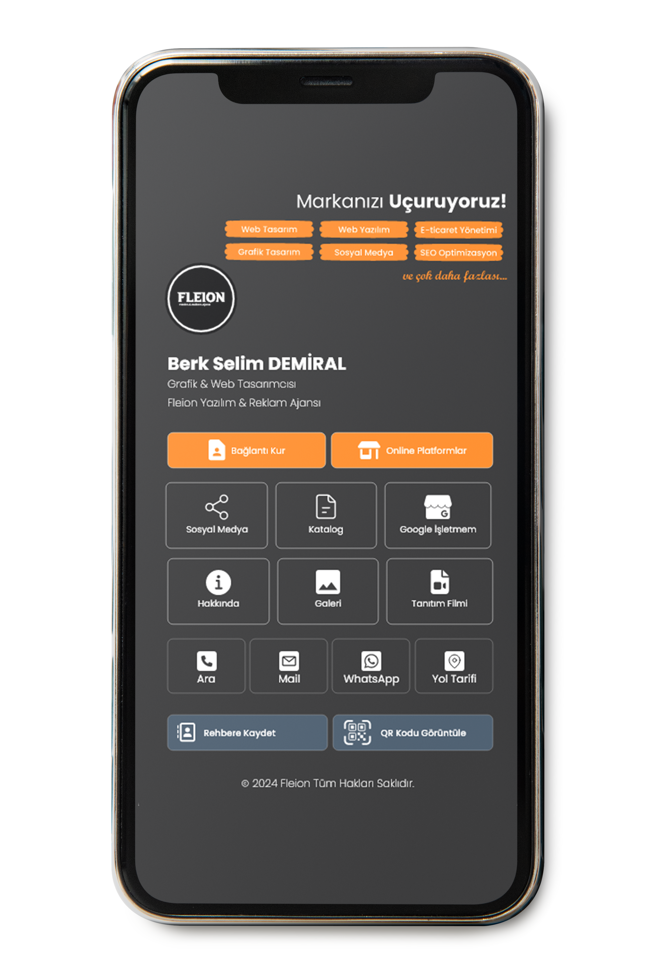 Fleion, dijital kartvizitlerinizi ve iş bilgilerinizi tek bir platformda toplamanızı sağlar. Öncelikle profilinizi oluşturur, iletişim bilgilerinizi, sosyal medya hesaplarınızı ve dijital içeriklerinizi ekleyebilirsiniz. Karekod ve temassız paylaşım özelliği sayesinde, bilgilerinizi saniyeler içinde istediğiniz kişiyle platform bağımsız olarak paylaşabilirsiniz. Fleion, sürekli güncel kalmanızı ve dijital dünyada varlık göstermeyi kolaylaştırır.